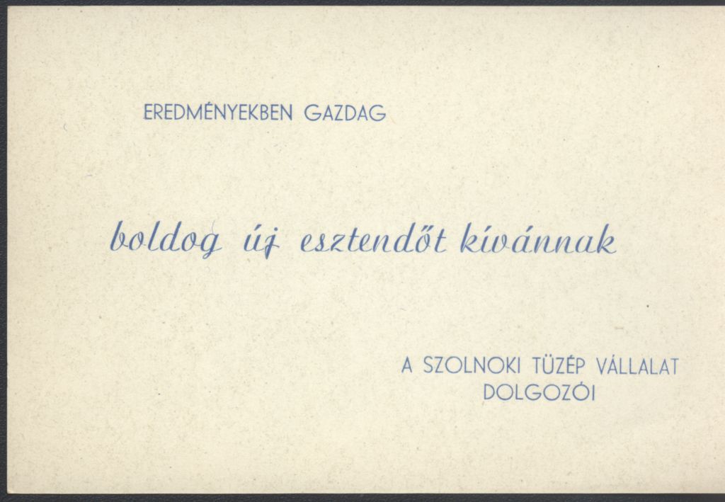 A szolnoki TÜZÉP Vállalat dolgozóinak Újévi köszöntő kártyája