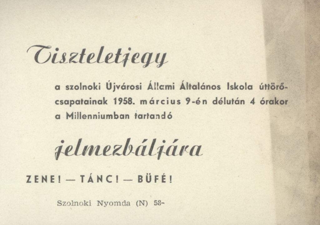 Tiszteletjegy a szolnoki Abonyi úti általános iskola tablóbáljára