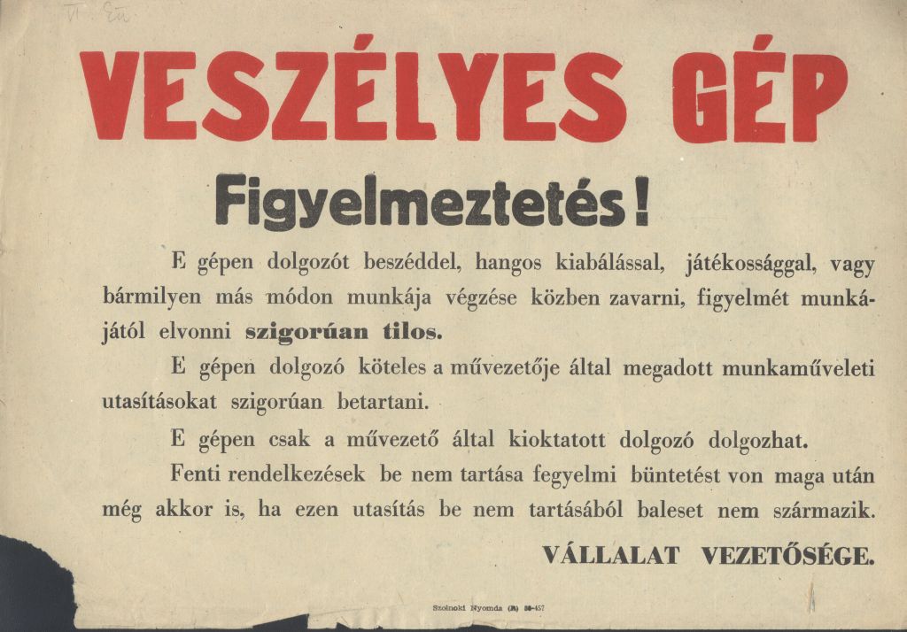 1958Veszélyes gép! Figyelmeztetés!