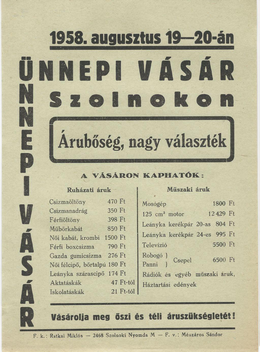 1958Ünnepi vásár Szolnokon 1958. szeptember 19-20. között