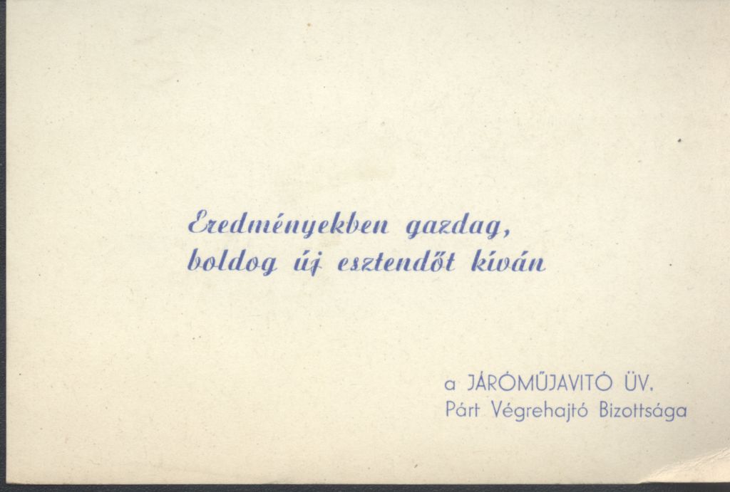 A Járműjavító ÜV. Párt Végrehajtó Bizottságának Újévi köszöntő kártyája