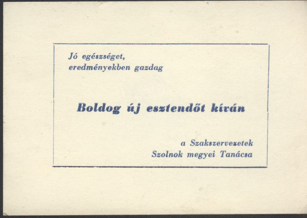 A Szakszervezetek Szolnok megyei Tanácsának Újévi köszöntő kártyája
