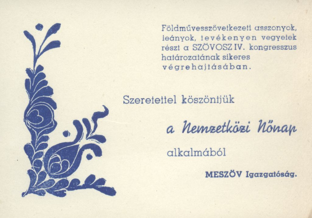 A MESZÖV Igazgatóságának Nőnapi köszöntő kártyája
