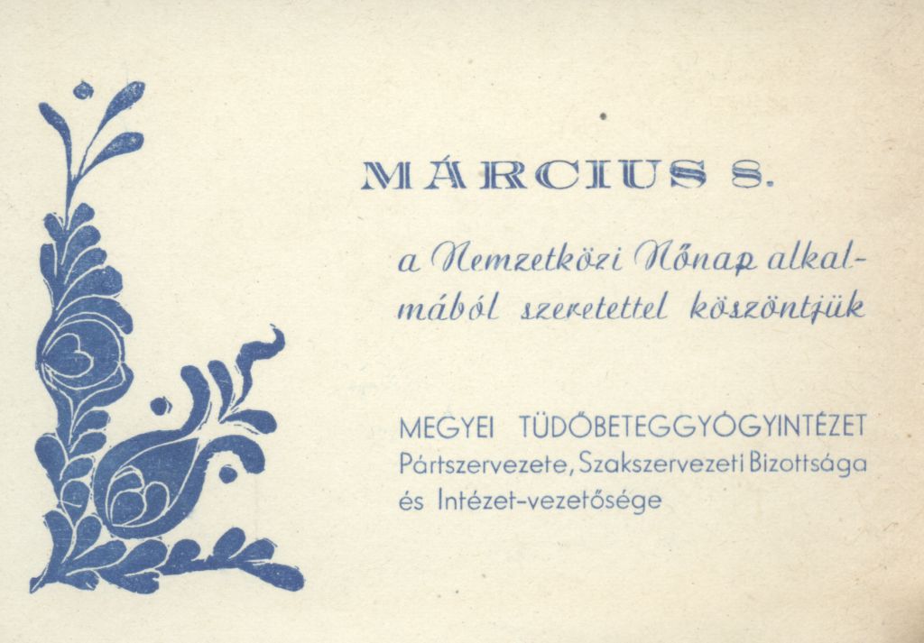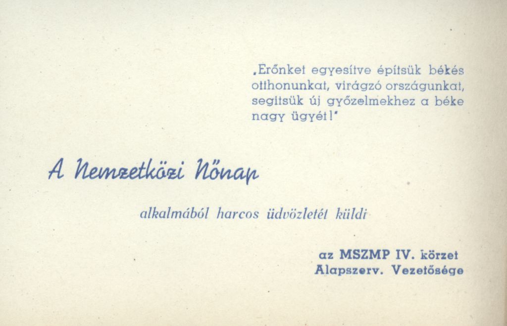 Az MSZMP IV. körzet Alapszerv. Vezetőségének Nőnapi köszöntő kártyája