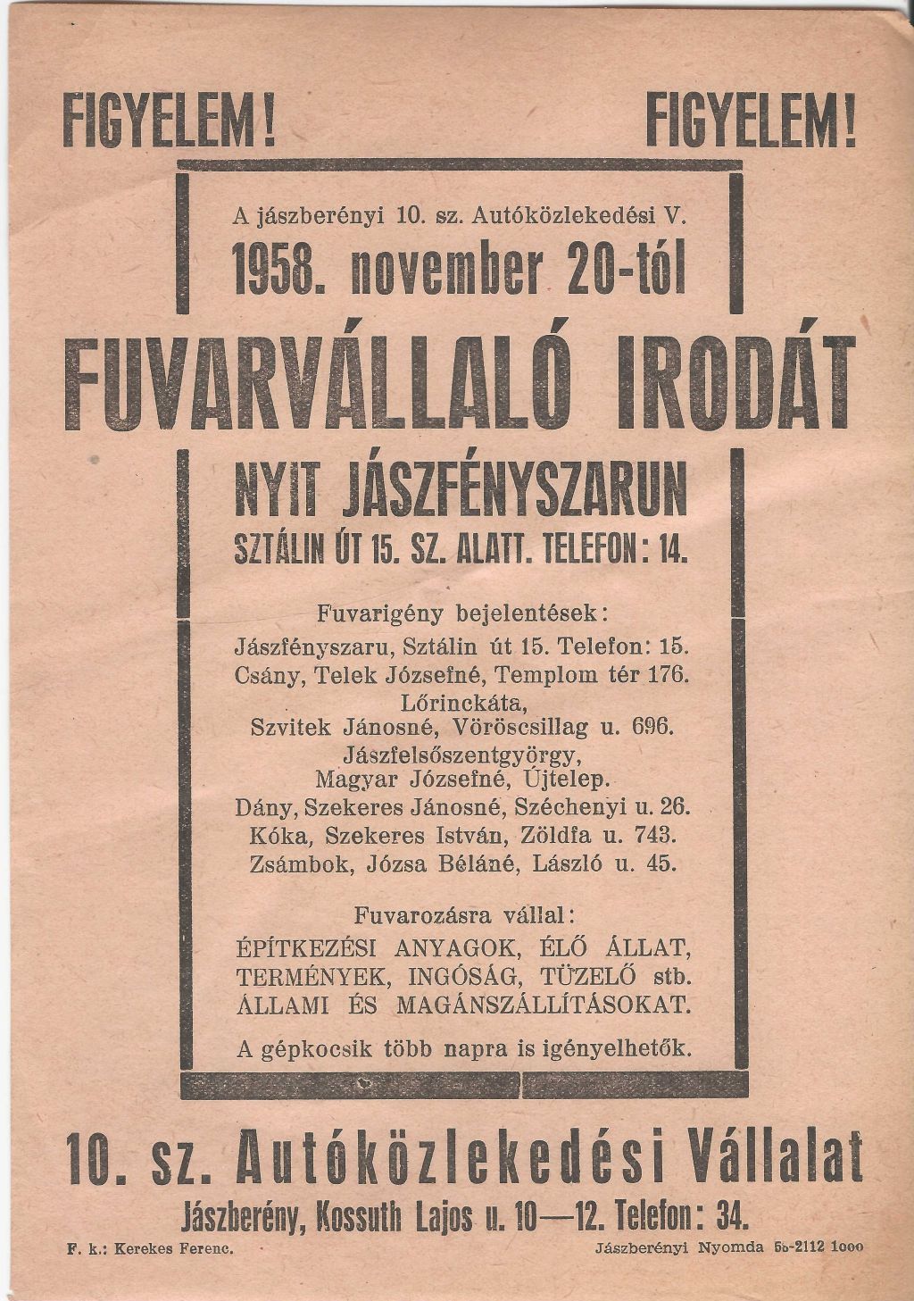 Fuvarvállaló Iroda nyílik