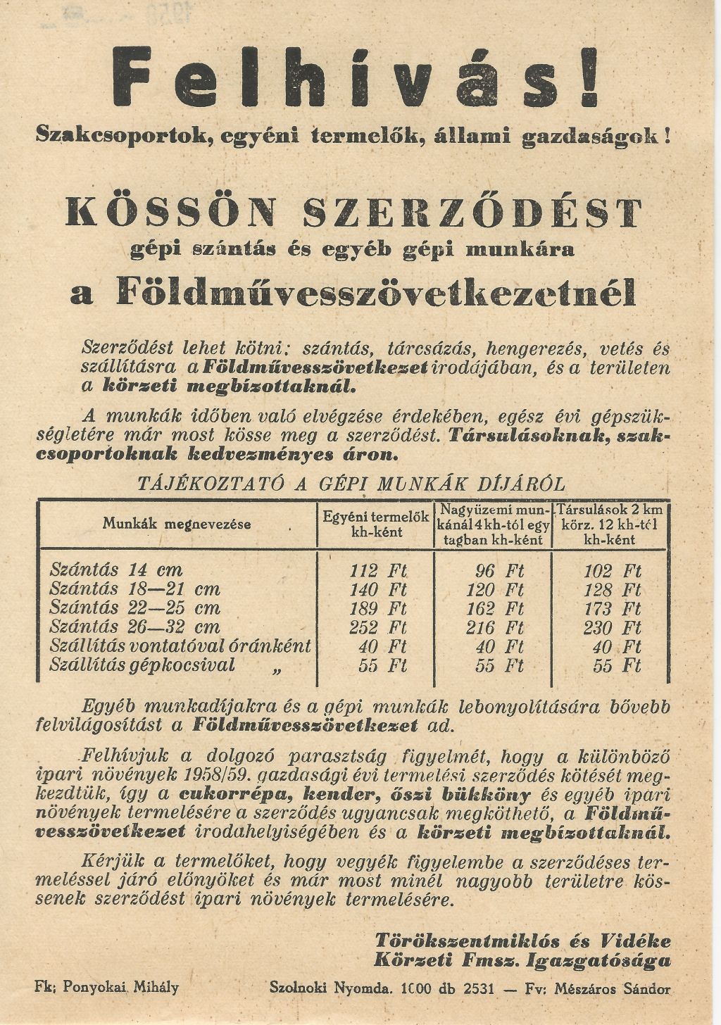 Felhívás! Kössön szerződést gépi szántás és egyéb gépi munkára a Földművesszövetkezetnél