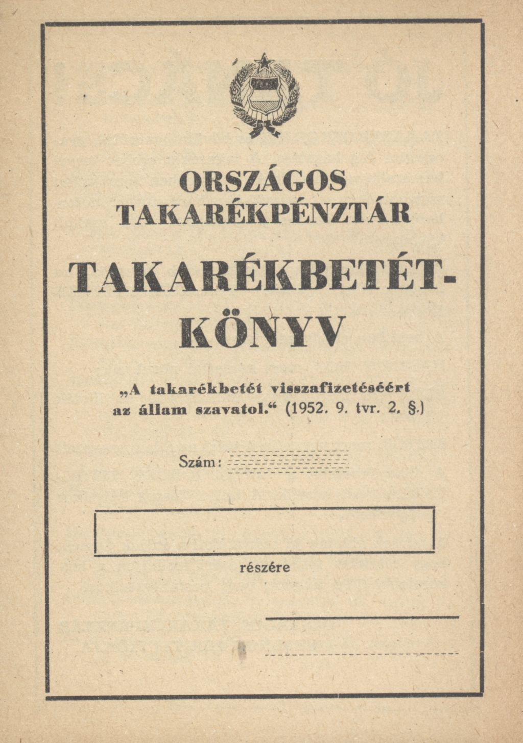 Országos Takarékpénztár Takarékbetétkönyv