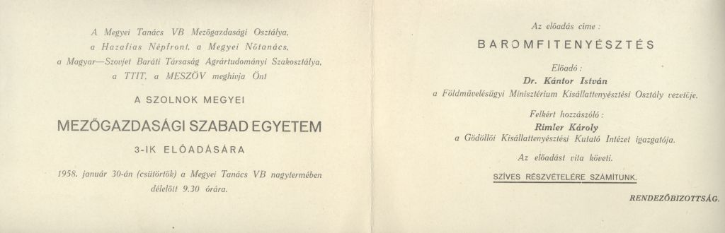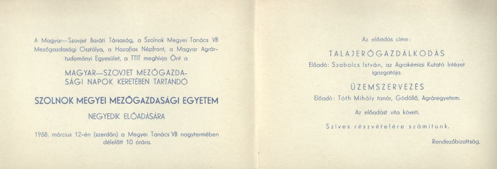 Mezőgazdasági EgyetemMeghívó a Szolnok Megyei Mezőgazdasági Egyetem előadásaira