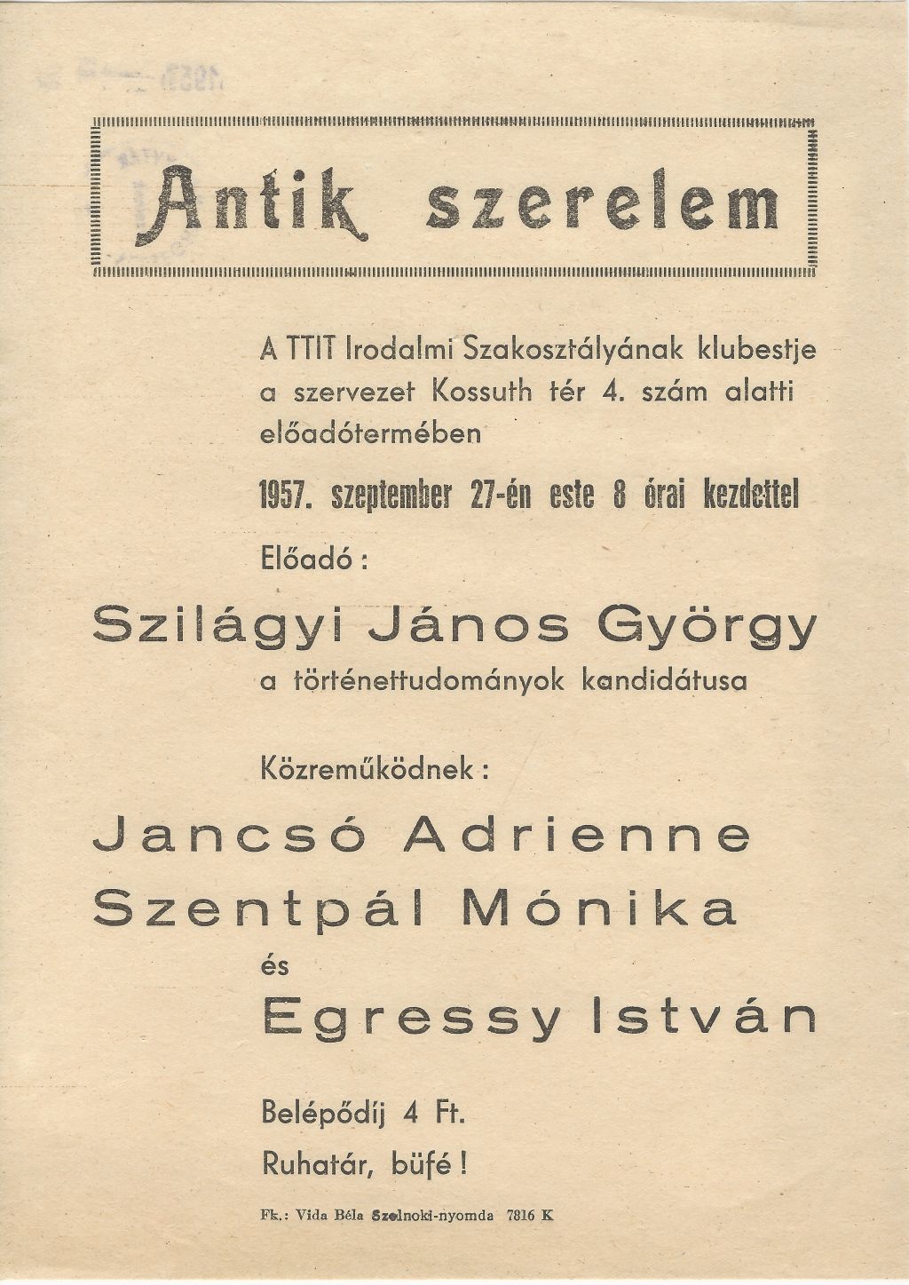 A Társadalom- és Természettudományi Ismeretterjesztő Társulat Szolnok megyei Szervezetének 1958. februári műsora