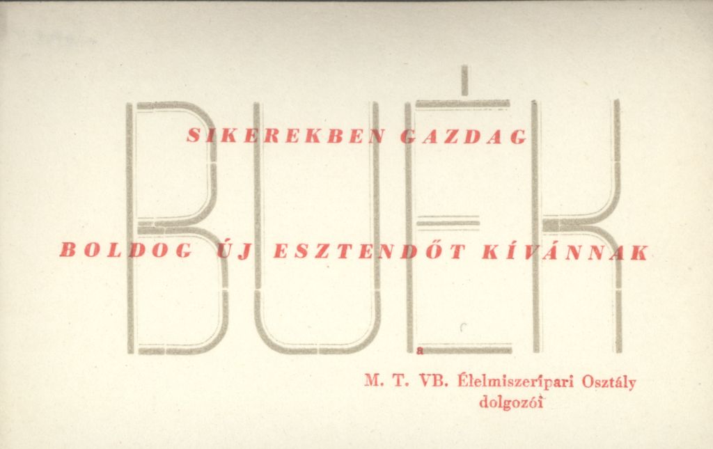 M. T. VB. Élelmiszeripari osztály dolgozóinak Újévi köszöntő kártyája