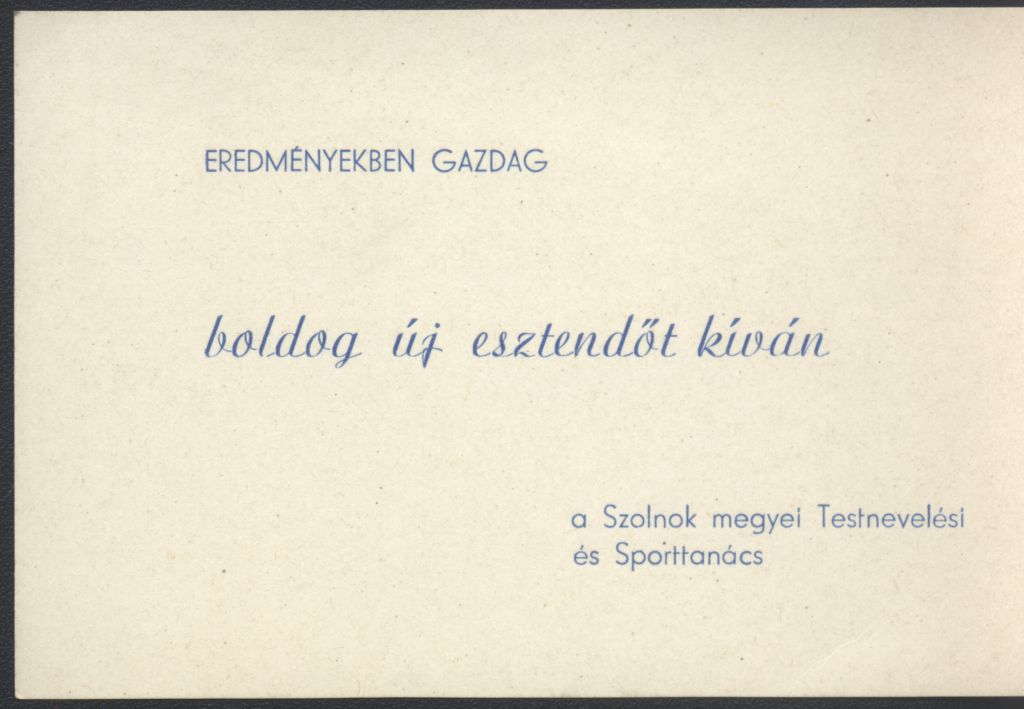 A Szolnok megyei Testnevelési és Sporttanács Újévi köszöntő kártyája