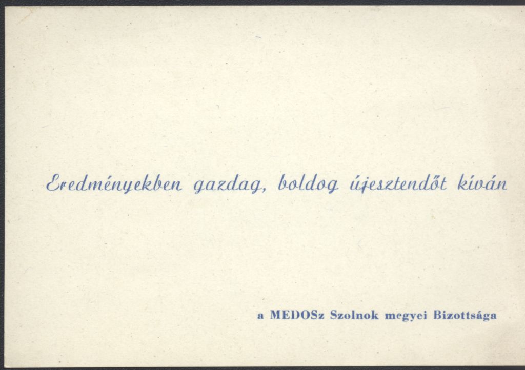 A MEDOSz Szolnok megyei Bizottságának Újévi köszöntő kártyája