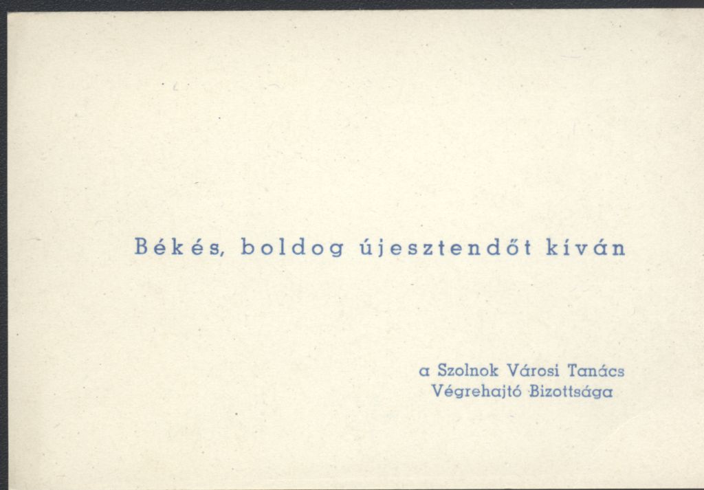 A Szolnok városi Tanács Végrehajtó Bizottságának Újévi köszöntő kártyája