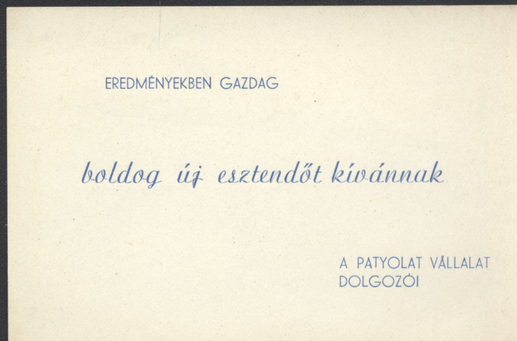 A Patyolat Vállalat dolgozóinak Újévi köszöntő kártyája