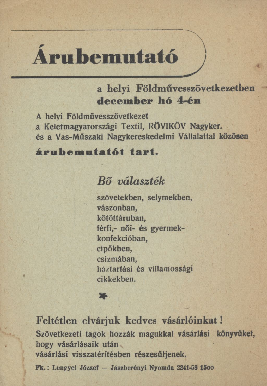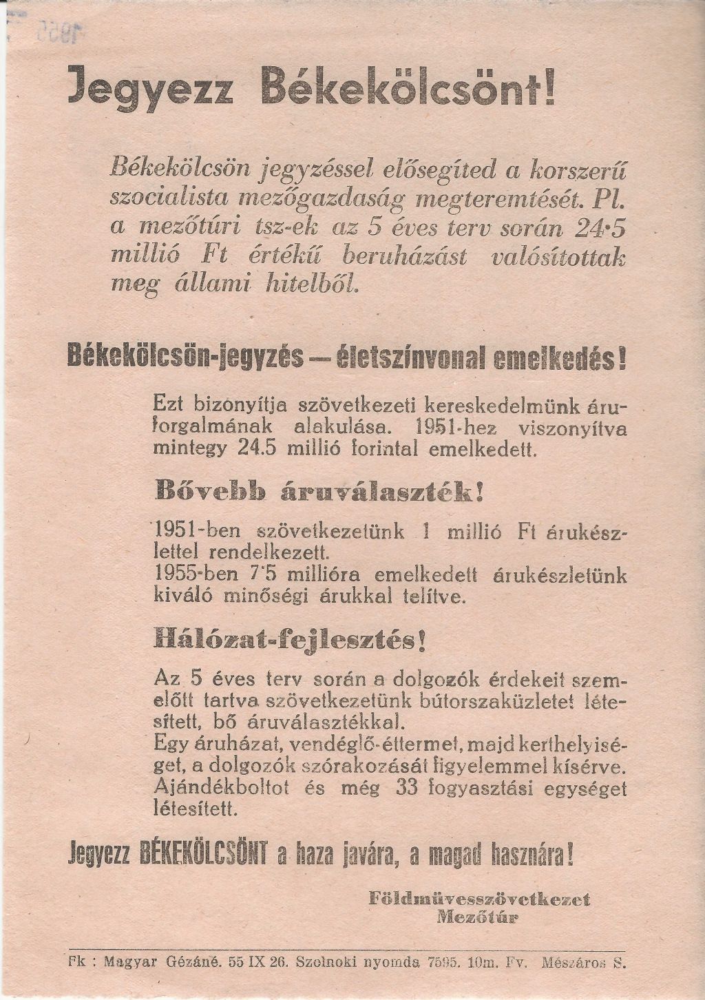 Mezőtúri Földművesszövetkezet szórólapja