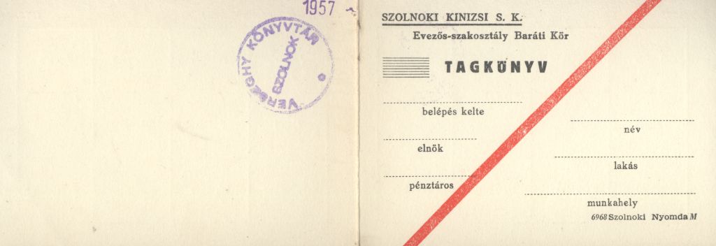 Szolnoki Kinizsi S. K. Evezős-szakosztály Baráti Kör tagsági könyv
