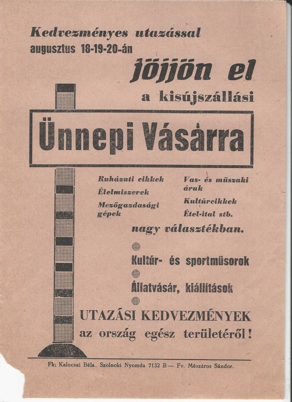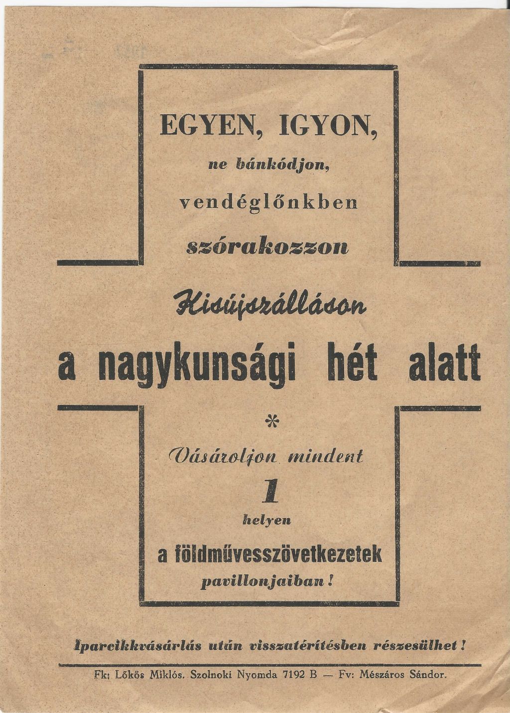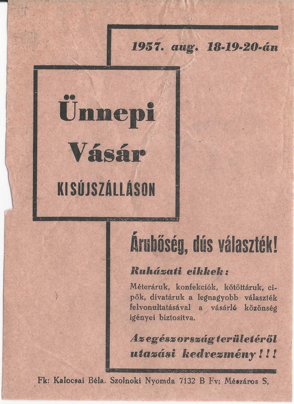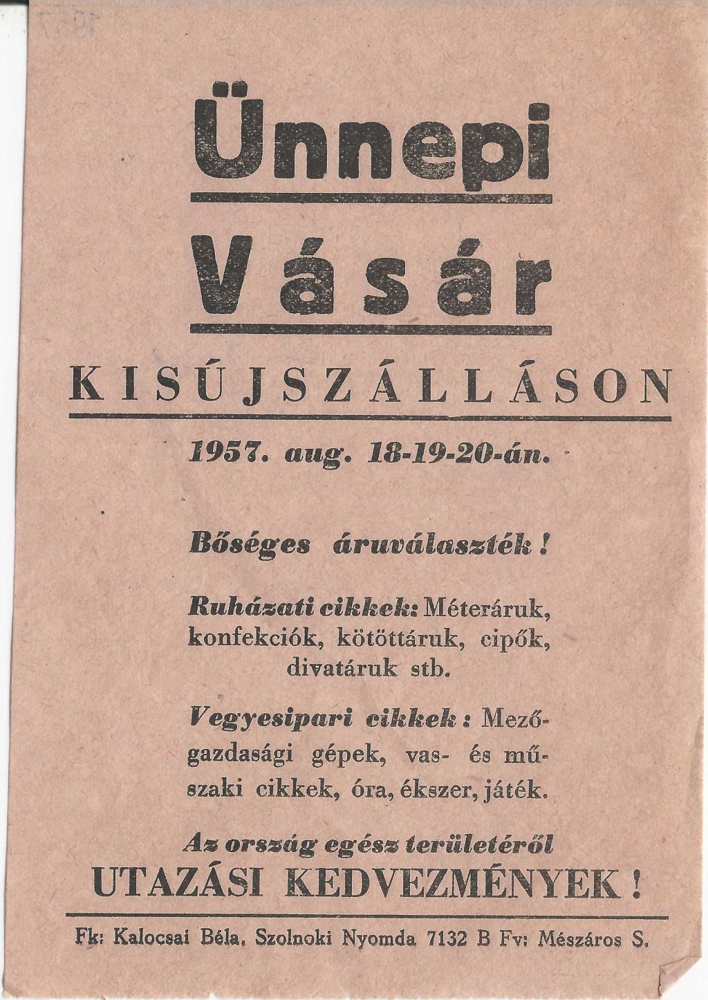 Kisújszállási Ünnepi vásár 1957. augusztus 18-20. között